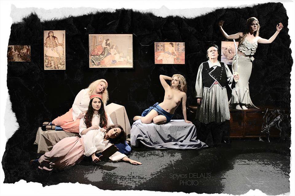 Πρόκειται για τη συνάντηση και τη συνομιλία ανάμεσα σε δύο πίνακες του Θεόφιλου: Την «Ερωτευμένη απελπισθείσα» και τις «Οθωμανίδες εκ της Υπαρχίας Κωνσταντινουπόλεως Νικομηδείας». Όλα αυτά παρουσία μιας τοιχογραφίας που παριστάνει τη γοργόνα , την αδελφή του Μεγαλέξανδρου.