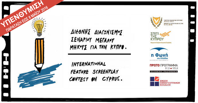 Anyone can participate by sending a screenplay with any subject concerning Cyprus or Cypriots, even stories that don’t necessarily take place on the island of Cyprus, nor have as characters Cypriots. Deadline 8 May 2016. All participants, besides the Cypriots who can fortify their screenplay in Cyprus, need to fortify their screenplay in the Scritwriters’ Guild of Greece (30.75 euros) either through ESE’s site or by depositing the fee at Piraeus Bank of Greece GR37 0171 8390 0068 3913 5579 922. Then they should send the bank’s receipt and the screenplay to akak1@hotmail.com