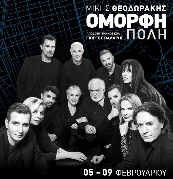 Με άξονα-μύθο τις γνωστές μελωδίες του μεγάλου μας μουσουργού και την ποίησή του για πρώτη φορά σε θεατρική σκηνή, ο σκηνοθέτης Γιώργος Βάλαρης δημιουργεί και παρουσιάζει μια σύγχρονη «Όμορφη πόλη» του 2020, μια μοναδική θεατρική-μουσική υπερπαραγωγή, μια ωδή στον μεγάλο μας συνθέτη Μίκη Θεοδωράκη. Μισό και πλέον αιώνα μετά το πρώτο ανέβασμα της θρυλικής παράστασης, το καλοκαίρι του 1962, η «Όμορφη πόλη» αναβιώνει στην Αίθουσα Αλεξάνδρα Τριάντη του Μεγάρου Μουσικής Αθηνών από τις 17 έως τις 30 Ιανουαρίου 2020.