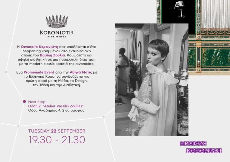Η 𝜪𝜾𝝂𝝄𝝅𝝄𝜾ί𝜶 𝜥𝝄𝝆𝝎𝝂𝜾ώ𝝉𝜼 σας προσκαλεί στο δικό της 𝙥𝙖𝙧𝙩𝙮 στο εντυπωσιακό 𝚊𝚝𝚎𝚕𝚒𝚎𝚛 𝐕𝐚𝐬𝐬𝐢𝐥𝐢𝐬 𝐄𝐦𝐦𝐚𝐧𝐮𝐞𝐥 𝐙𝐨𝐮𝐥𝐢𝐚𝐬 να «γευτείτε» την κομψότητα και την υψηλή αισθητική τόσο στις δημιουργίες του διεθνούς φήμης σχεδιαστή όσο και στα modern classic κρασιά της οινοποιίας.