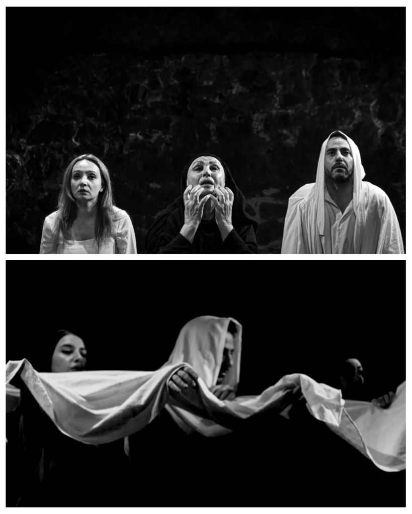Για πρώτη φορά στην παγκόσμια ιστορία του σύγχρονου θεάτρου η Μήτηρ Θεού ενσαρκώνεται στην σκηνή, σε μια καθηλωτική παράσταση, με απόλυτο σεβασμό, από μια από τις σημαντικότερες ηθοποιούς της Ελληνικής θεατρικής σκηνής την Γεωργία Ζώη που επίσης ερμηνεύει μοναδικά μοιρολόγια και εκκλησιαστικούς ύμνους.