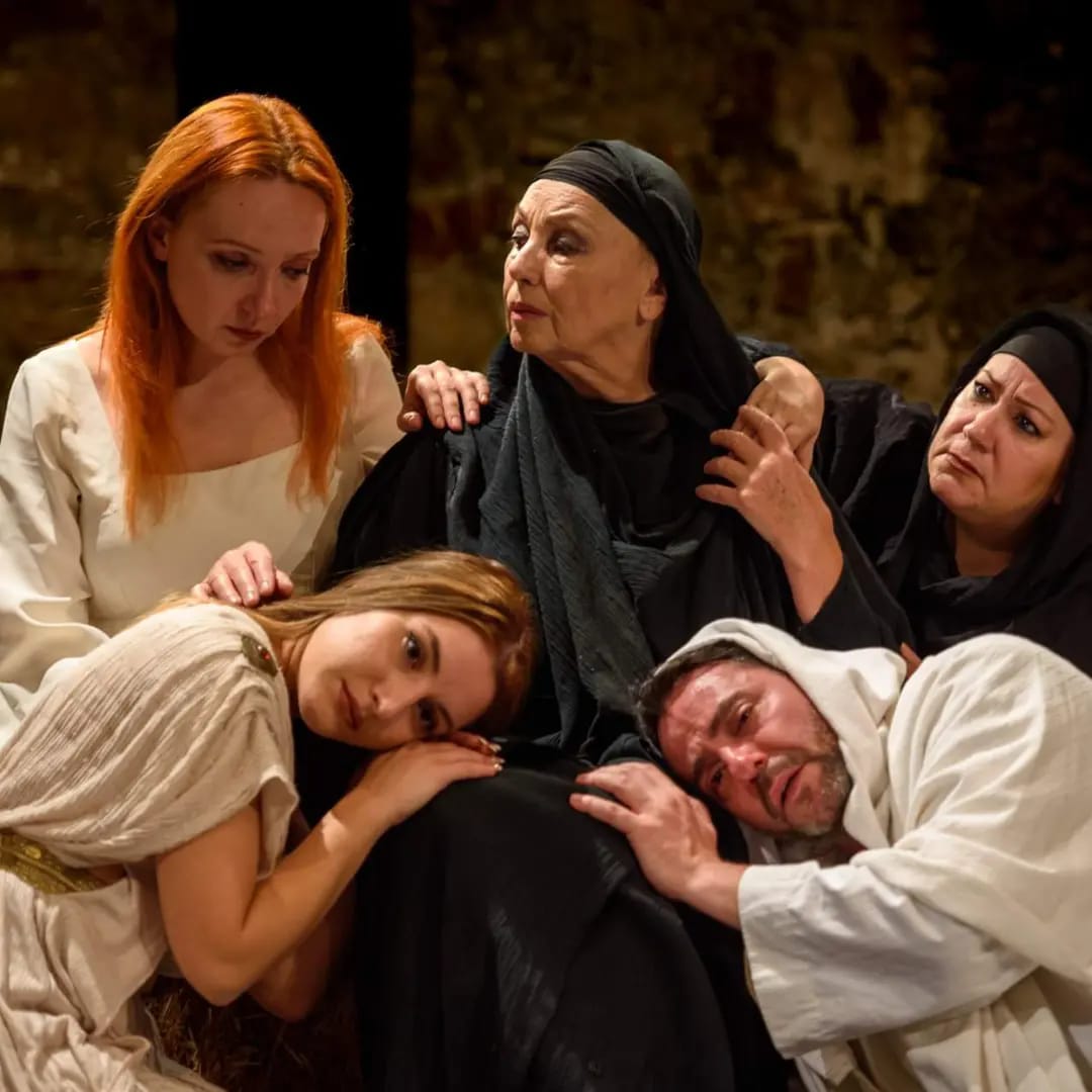 Για πρώτη φορά στην παγκόσμια ιστορία του σύγχρονου θεάτρου η Μήτηρ Θεού ενσαρκώνεται στην σκηνή, σε μια καθηλωτική παράσταση, με απόλυτο σεβασμό, από μια από τις σημαντικότερες ηθοποιούς της Ελληνικής θεατρικής σκηνής την Γεωργία Ζώη που επίσης ερμηνεύει μοναδικά μοιρολόγια και εκκλησιαστικούς ύμνους.