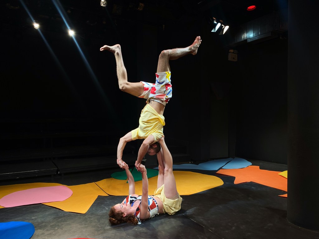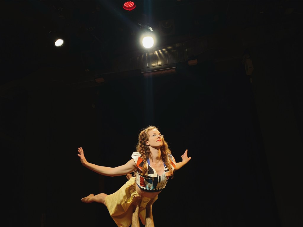 Η ιστορία ζωντανεύει μέσα από τις ποιητικές εικόνες που δημιουργούν οι ακροβάτες Ευαγγελία Μόσιου και Πάνος Σολδάτος και αποκτά φωνή με την υπέροχη μουσική που έγραψε ειδικά για το έργο ο Σταύρος Ρουμελιώτης (Usurum Band, The Holy Goat). Οι δύο πρωταγωνιστές αφηγούνται την ιστορία με τα σώματα και τις ιδιαίτερες ακροβατικές δεξιότητές τους, τον χορό και την εκφραστικότητα των προσώπων τους. Η μουσική συνοδεύει στιγμές παιχνιδιού και ονειροπόλησης, υπογραμμίζει τη δράση ή τις όποιες αλλαγές στη διάθεση των ηρώων και συμβάλλει στη σύνθεση απρόβλεπτων κόσμων που αναδεικνύουν την ιστορία. Τα μέσα που κυριαρχούν στο έργο είναι τα ακροβατικά, η ρυθμική, ο χορός, η παντομίμα, δηλαδή στοιχεία που συναντά κανείς στον βωβό κινηματογράφο και το τσίρκο.