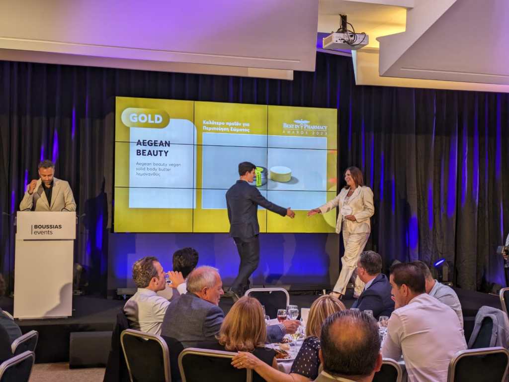 Με χαρά η ομάδα μας της AEGEAN BEAUTY παραβρέθηκε στη φετινή διοργάνωση Best in Pharmacy Awards 2023 που τελούσε υπό την αιγίδα του ΕΟΦ όπου λάβαμε 2 Χρυσά Βραβεία και ένα Χάλκινο για τη σειρά μας “ Zero Waste Vegan Solid Cosmetics”.