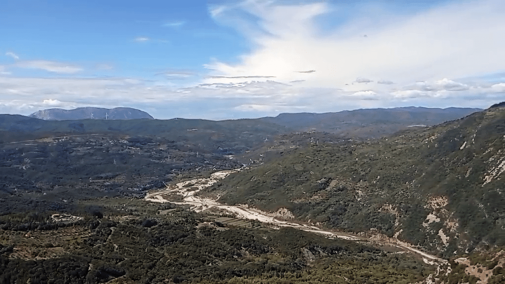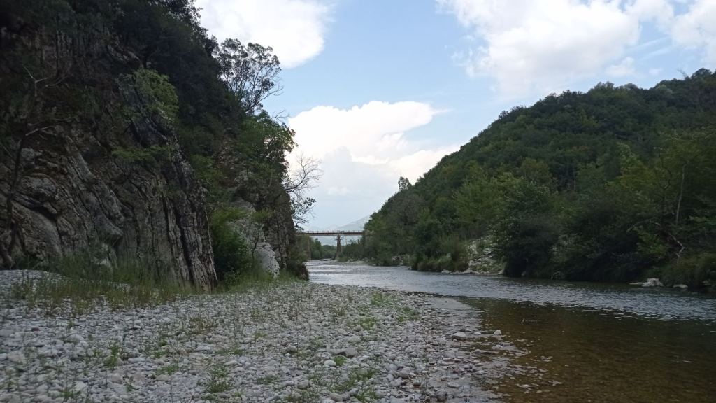 Το τελευταίο βέβαια ορεινό κομμάτι της διαδρομής, θα μας εντυπωσιάσει και θα μας συνεπάρει περισσότερο απ’ όλα, αφού ο δρόμος κατεβαίνει γατζωμένος στην πλαγιά του βουνού, παράλληλα με το ποτάμι, με μειούμενη πορεία από τα 620 για τουλάχιστον 10 χιλιόμετρα με την απίθανη θέα της κοίτης του ποταμού, του φαραγγιού και των λόφων προς τη δύση.