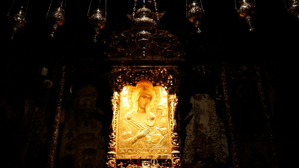 Μα πάνω απ’ όλα το Ανέσπερο φως του καντηλιού της Παναγιάς που φώτιζει τον δρόμο των προσκυνητών στην χάρη της.