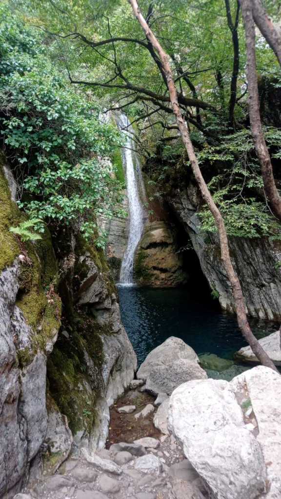 Ένα στενό φαράγγι από πλατάνια και έλατα μας οδηγεί από την λίμνη ως εδώ στις ψηλές πλαγιές του Παναιτωλικού μέχρι σχεδόν τα όρια του νόμου Αιτωλοακαρνανίας.