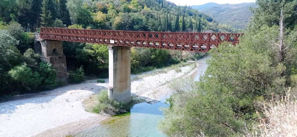 Στα 120 μέτρα: Σιδερένια γέφυρα του Μπανιά, μια από της γέφυρες του Ευήνου που ενώνει την επαρχία Ναυπακτίας με την επαρχία Τριχωνίδος.