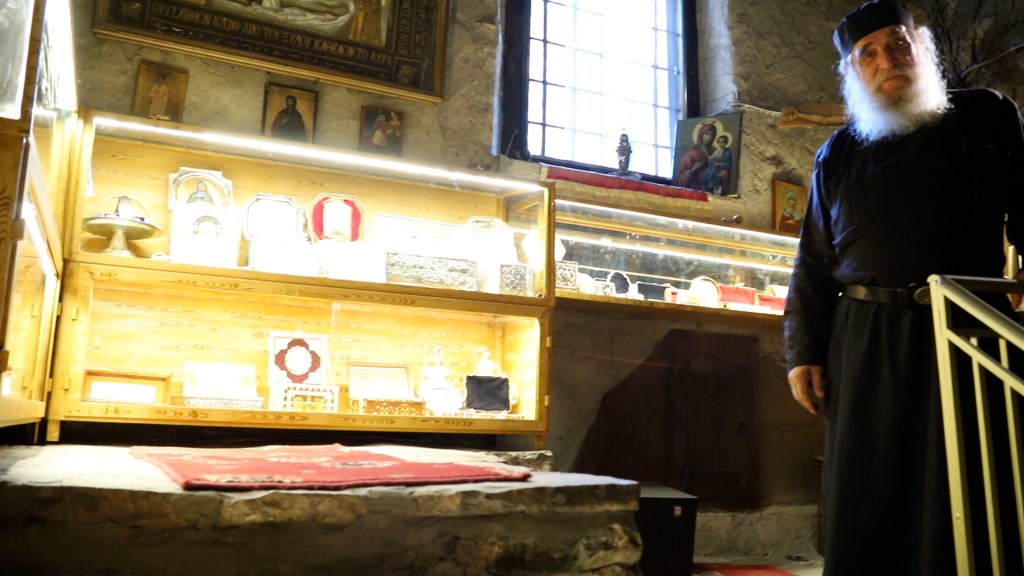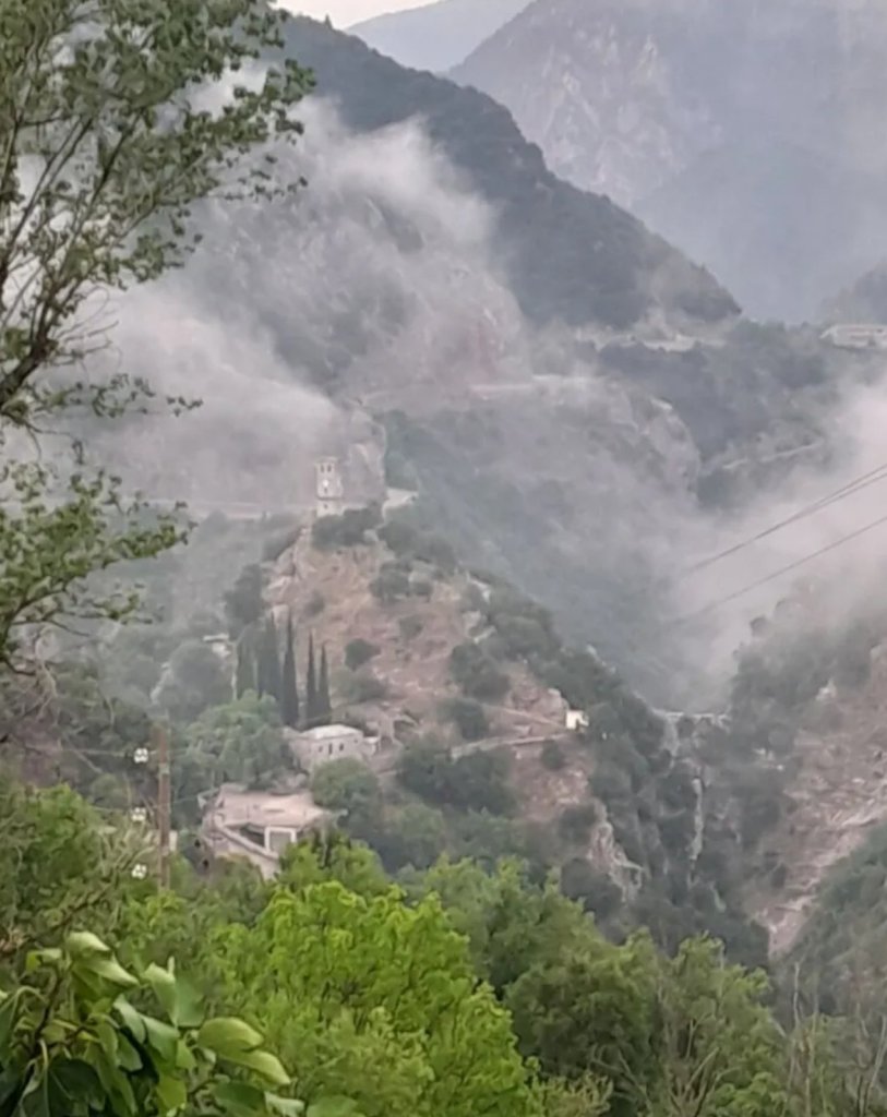 Την ίδια εποχή στα δύσβατα μέρη της Ευρυτανίας, τοπικοί βοσκοί παρατηρούν επί τρεις μέρες ένα φως να ενώνει τον ουρανό με μια απόκρημνη σπηλιά. Αποφασισμένοι να δουν τι συμβαίνει ανοίγουν μονοπάτι στα βράχια του φαραγγιού. Έκθαμβοι ανακαλύπτουν μια εικόνα της Παναγίας με ένα καντήλι αναμμένο μπροστά της.