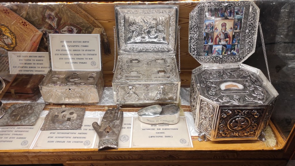 Στη Λειψανοθήκη της Ιεράς Μονής φυλάσσονται τουλάχιστον 213 Λείψανα Αγίων.