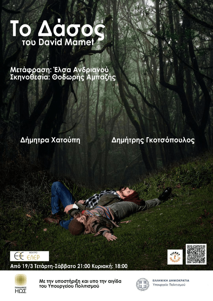 Το αριστουργηματικό και σπάνια παρουσιαζόμενο έργο του David Mamet, «Το Δάσος» («The Woods»), σε σκηνοθεσία Θοδωρή Αμπαζή έρχεται στη σκηνή του θεάτρου Ελένη Ερήμου (ΕΛΕΡ).