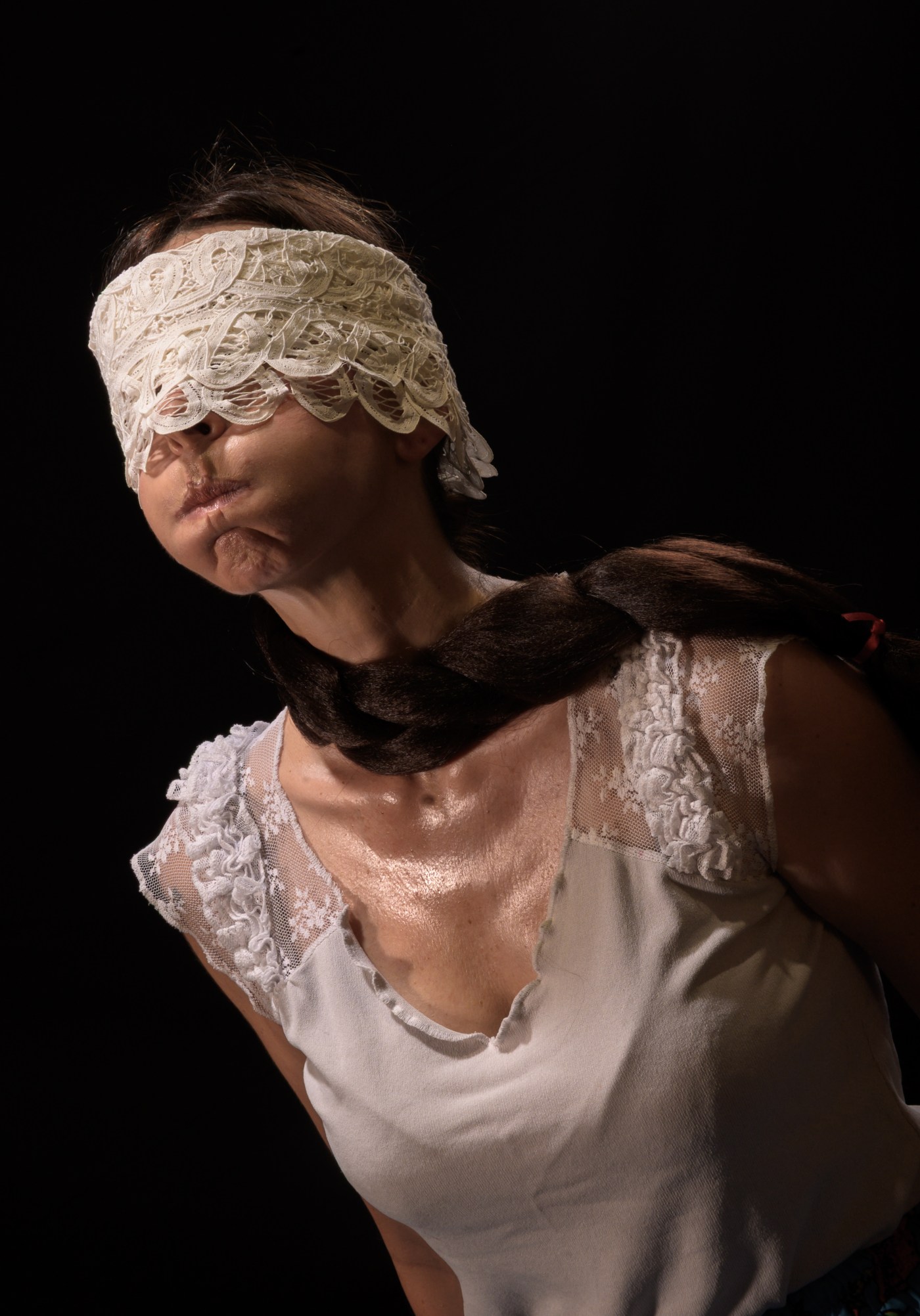 Η σκηνοθετική βούληση στρέφεται στην ανάδειξη της σκηνικής λιτότητας και της ερμηνευτικής εγκράτειας ως προς τα κορυφαία εκφραστικά μέσα της υποκριτικής τέχνης μέσα από ένα πρόσωπο που αφηγείται ανάγλυφα όλες τις φωνές του εκτενούς αποσπάσματος. Η πολύμηνη εργασία στον λόγο δύναται να συνδράμει τη φαντασία του θεατή στη συμπλήρωση των εικόνων και στην υποδοχή έντονων συναισθημάτων της ελλιπούς δράσης. Η ανοιξιάτικη ελληνική φύση πρωταγωνιστεί με την παραγωγή ήχων από την ηθοποιό και τα υποστηρικτικά τεχνικά μέσα εξανεμίζονται στο δρων σώμα που πάσχει και συμπάσχει με το αποτρόπαιο του λόγου, το οποίο λειτουργεί και αυτοαναφορικά (ως τραύμα). Άλλωστε, η επί σκηνής αφηγήτρια