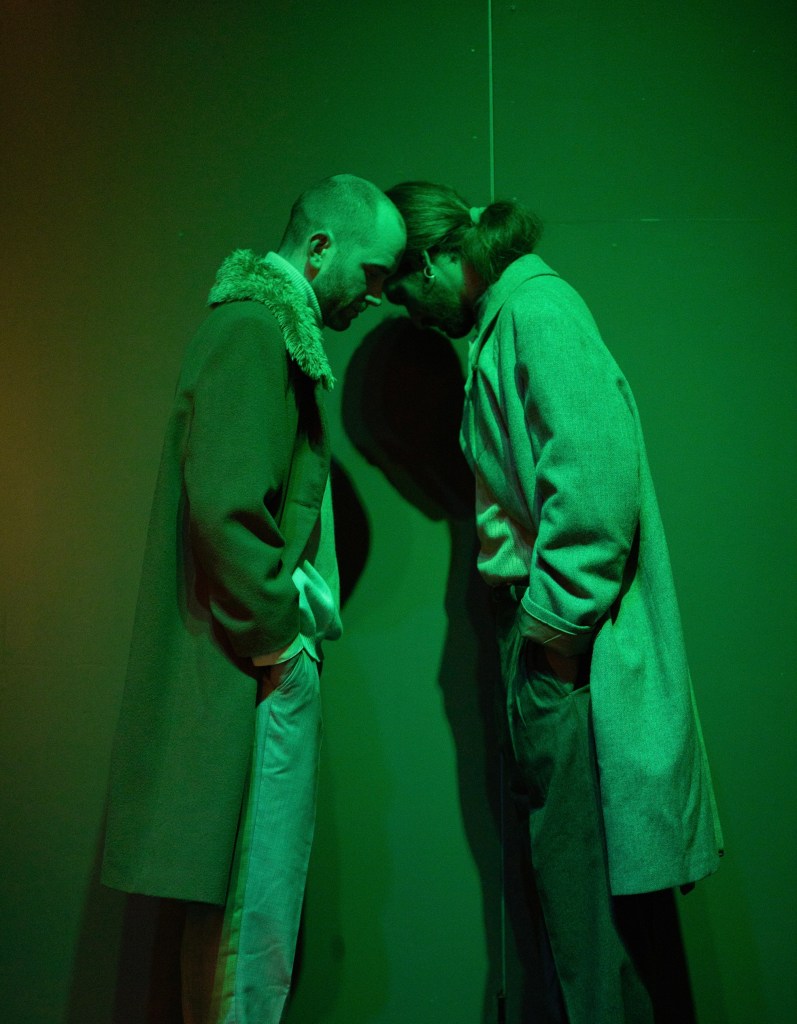 Στην πορεία, η ατομική διερώτηση μετατοπίστηκε. Η διαδικασία των προβών, η παρουσία των δύο ηθοποιών με τις δικές τους γλώσσες, τα δικά τους σώματα, τις δικές τους χρονικότητες, έφερε στο προσκήνιο την ανάγκη να αρθρωθεί ένας χώρος συλλογικός, όπου το προσωπικό τραύμα διαπλέκεται με το συλλογικό ασυνείδητο· όπου η εμπειρία του ενός γίνεται καθρέφτης για τον άλλον· όπου το θέατρο δεν είναι μόνον τόπος αφήγησης, αλλά κυρίως τόπος συνάντησης.