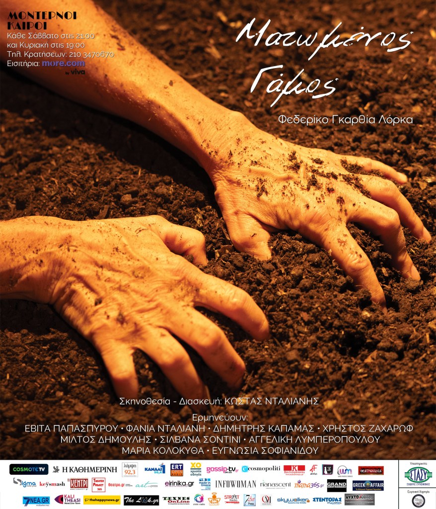 Το αριστούργημα του παγκόσμιου θεάτρου “Ματωμένος Γάμος” του Φεδερίκο Γκαρθία Λόρκα, μετά τη μεγάλη επιτυχία της περασμένης θεατρικής σεζόν, επιστρέφει στο Θέατρο ΜΟΝΤΕΡΝΟΙ ΚΑΙΡΟΙ στο Γκάζι, για 2η χρονιά, από το Σάββατο 29 Νοεμβρίου και κάθε Σάββατο στις 21:00 και Κυριακή στις 19:00.
