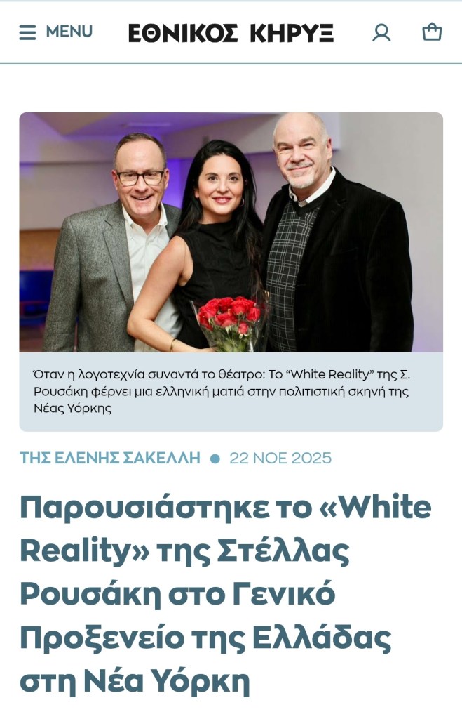 hellasjournal. com: Η λογοτεχνία συνάντησε το θέατρο: Η Στέλλα Ρουσάκη έφερε με το “White Reality” μια ελληνική ματιά στην πολιτιστική σκηνή της Νέας Υόρκης – Hellasjournal.com
