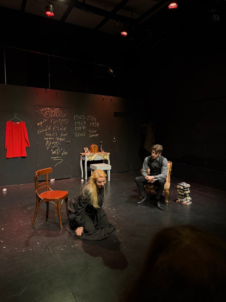 Την συνέντευξη της ηρωίδας, που ενσαρκώνει και σκηνοθετεί η συγγραφέας του βιβλίου, «διακόπτει» συχνά ο Νίκος Θεοδωράκης, που τραγουδά ζωντανά στην παράσταση.