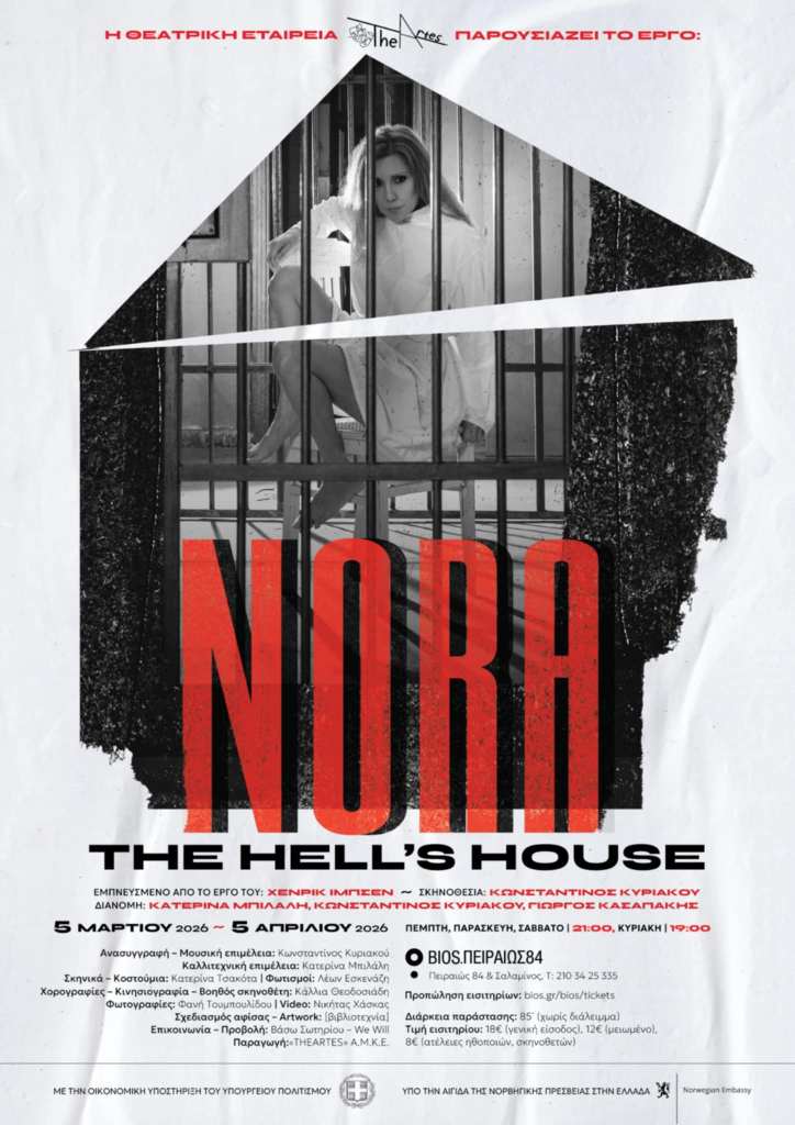 Η Θεατρική Εταιρεία THEARTES των Κωνσταντίνου Κυριακού και Κατερίνας Μπιλάλη παρουσιάζει την παράσταση «Nora: The Hell’s House» εμπνευσμένη από το έργο «Νόρα ή Το Κουκλόσπιτο» του Χένρικ Ίμπσεν σε έναν διάλογο με τον «Φάουστ» του Γ.Β. φον Γκαίτε.