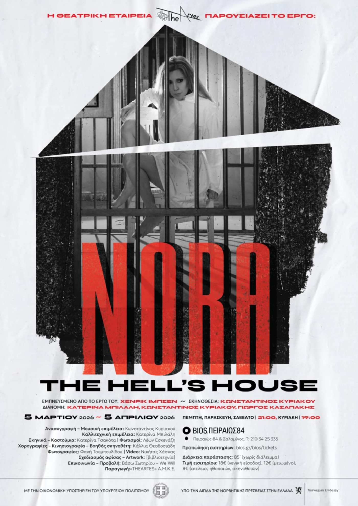 Η Θεατρική Εταιρεία THEARTES των Κωνσταντίνου Κυριακού και Κατερίνας Μπιλάλη παρουσιάζει την παράσταση «Nora: The Hell’s House» εμπνευσμένη από το έργο «Νόρα ή Το Κουκλόσπιτο» του Χένρικ Ίμπσεν σε έναν διάλογο με τον «Φάουστ» του Γ.Β. φον Γκαίτε.