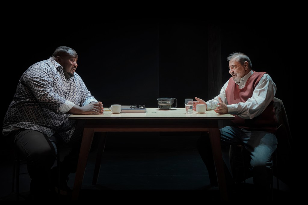 Η μεγαλύτερη πρόκληση φυσικά, είναι η “υλοποίηση” ενός απόλυτα διαλογικού θεατρικού κειμένου σε κάτι ελκυστικό στη θεατρική σκηνή. Το Έβερεστ του σκηνοθέτη. Όμως, το υποδόριο χιούμορ και ο σαρκασμός που κυριαρχούν σε όλη σχεδόν τη διάρκεια της αναμέτρησης των δυο χαρακτήρων, τα πειράγματα και η ειρωνεία οδηγούν πιστεύω σε υψηλή απόλαυση. Μέσα στην αμείλικτη σκληρότητα που αποπνέει το θέμα. Και πάντα, η δυσκολότερη αναμέτρηση στη θεατρική πράξη είναι η προσπάθεια που κάνουμε ‘εμείς’ επάνω στη σκηνή, με την ενδόμυχη προσδοκία του θεατή να ‘εξαπατηθεί’ ώστε να πιστέψει -έστω για κλάσματα δευτερολέπτου- ότι σε ένα παράλληλο σύμπαν τα πρόσωπα και οι καταστάσεις που παρακολουθεί είναι όντως ‘πραγματικά’.