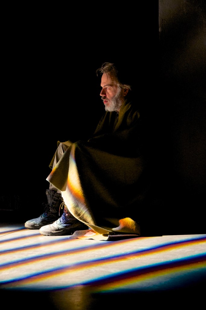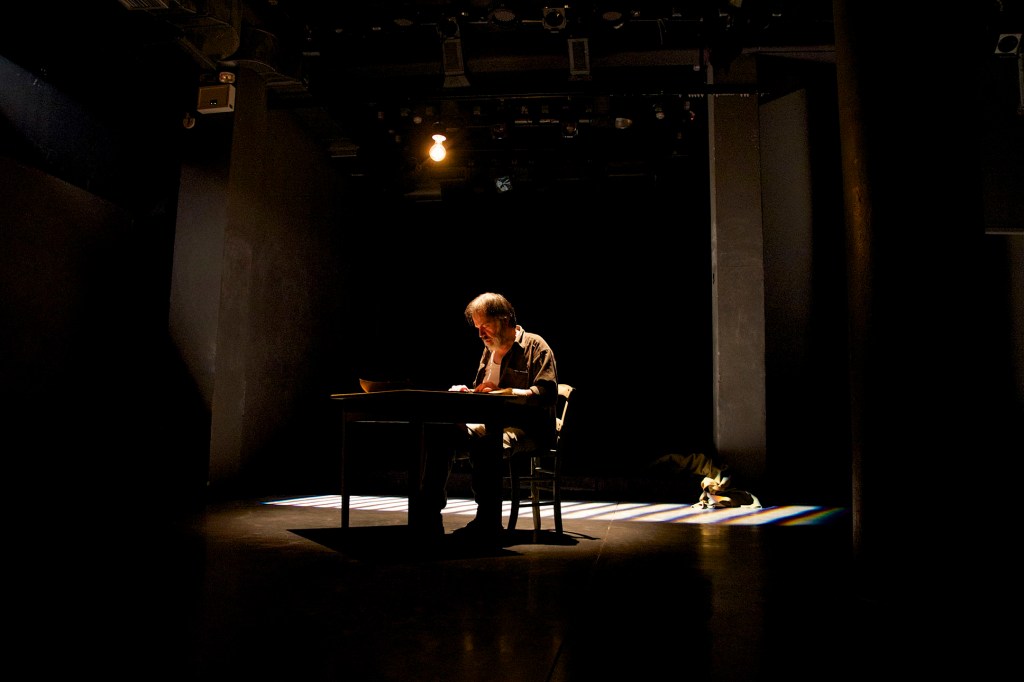 Ο Φώτης Μακρής ερμηνεύει, σε έναν συγκλονιστικό μονόλογο, τον ταραγμένο αυτόν ήρωα που σταδιακά αμφισβητεί κάθε είδους πεποίθηση. Το έργο ερμηνεύθηκε από αλληγορία για τον εμφύλιο και ως καταγγελία ενάντια σε κάθε είδους εξουσία, αλλά και ως ένα σχόλιο στον δυτικό πολιτισμό.