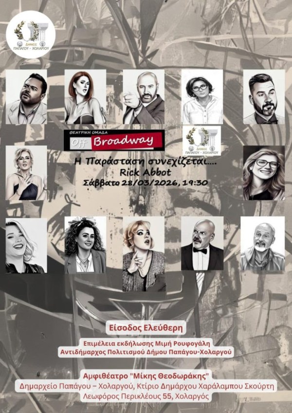 ΘΕΑΤΡΙΚΕΣ ΠΑΡΑΣΤΑΣΕΙΣ ΣΤΙΣ 28 ΚΑΙ 29 ΜΑΡΤΙΟΥ ΣΤΟ ΔΗΜΟ ΠΑΠΑΓΟΥ-ΧΟΛΑΡΓΟΥ