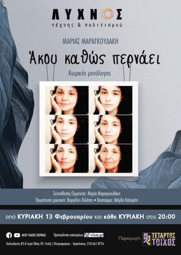 «ΑΚΟΥ ΚΑΘΩΣ ΠΕΡΝΑΕΙ»της Μαρία Μαραγκουδάκη-ΘΕΑΤΡΟ ΛΥΧΝΟΣ Τέχνης & Πολιτισμού