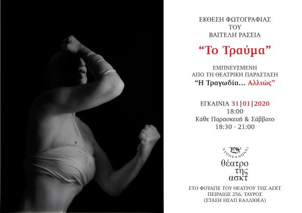 «Η Τραγωδία…αλλιώς» συναντά το « Τραύμα» Νέος κύκλος παραστάσεων και έκθεση φωτογραφίας . Μετά την μεγάλη επιτυχία που σημείωσε η παράσταση «Η Τραγωδία …αλλιώς» μια σουρεαλιστική κωμωδία σε σκηνοθεσία της Αθηνάς Παππά και κείμενα της ίδιας και του Νίκου Γιαννόπουλου ,επιστρέφει από 31/1/2020 στο ίδιο χώρο της αίθουσας του θεάτρου της ΑΣΚΤ κάθε Παρασκευή και... Continue Reading →