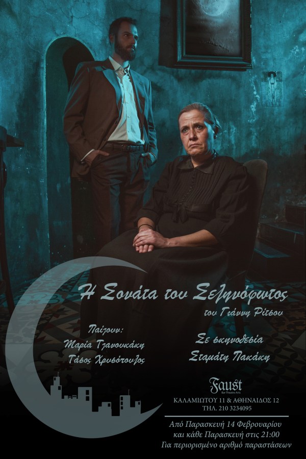 «Η Σονάτα του Σεληνόφωτος» του Γιάννη Ρίτσου σε σκηνοθεσία Σταμάτη Πακάκη Από τις 14 Φεβρουαρίου 2020 κάθε Παρασκευή στις 21:00 για περιορισμένο αριθμό παραστάσεων Μετά την επιτυχία της μουσικοθεατρικής παράστασης «ΜΑΝΑ», και της κοινωνικής κωμωδίας «550» στο Θέατρο Faust, ο Σταμάτης Πακάκης επιστρέφει στον ίδιο χώρο με τη σκηνοθεσία του έργου του Γιάννη Ρίτσου «Η Σονάτα... Continue Reading →