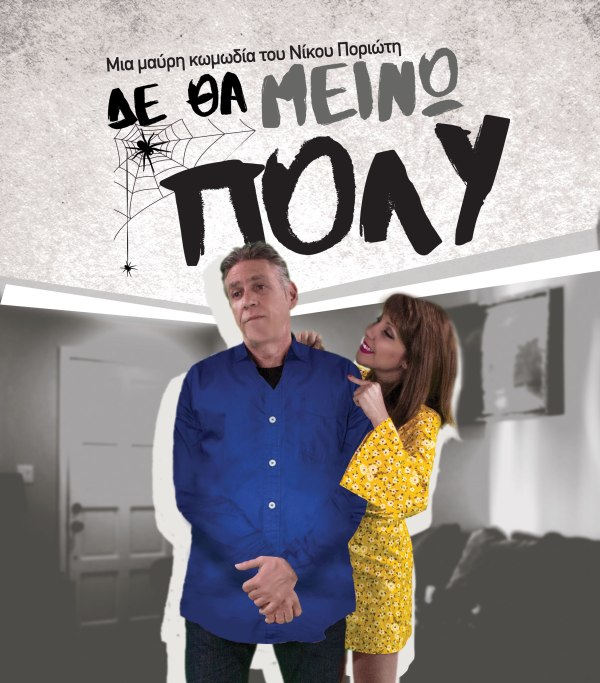 «ΔΕ ΘΑ ΜΕΙΝΩ ΠΟΛΥ» Του Νίκου Ποριώτη Πρεμιέρα 20 Απριλίου 2018 Η μαύρη κωμωδία του Νίκου Ποριώτη που ήρθε για να μείνει! Η παράσταση «Δε θα μείνω πολύ» παρουσιάστηκε τον Φεβρουάριο του 2009 σε σκηνοθεσία Ροζαμάλιας Κυρίου και ηθοποιούς τη Βίλη Σωτηροπούλου και τον Νίκο Ποριώτη. Στη συνέχεια, το 2010, με τίτλο ΄΄33 φορές να... Continue Reading →